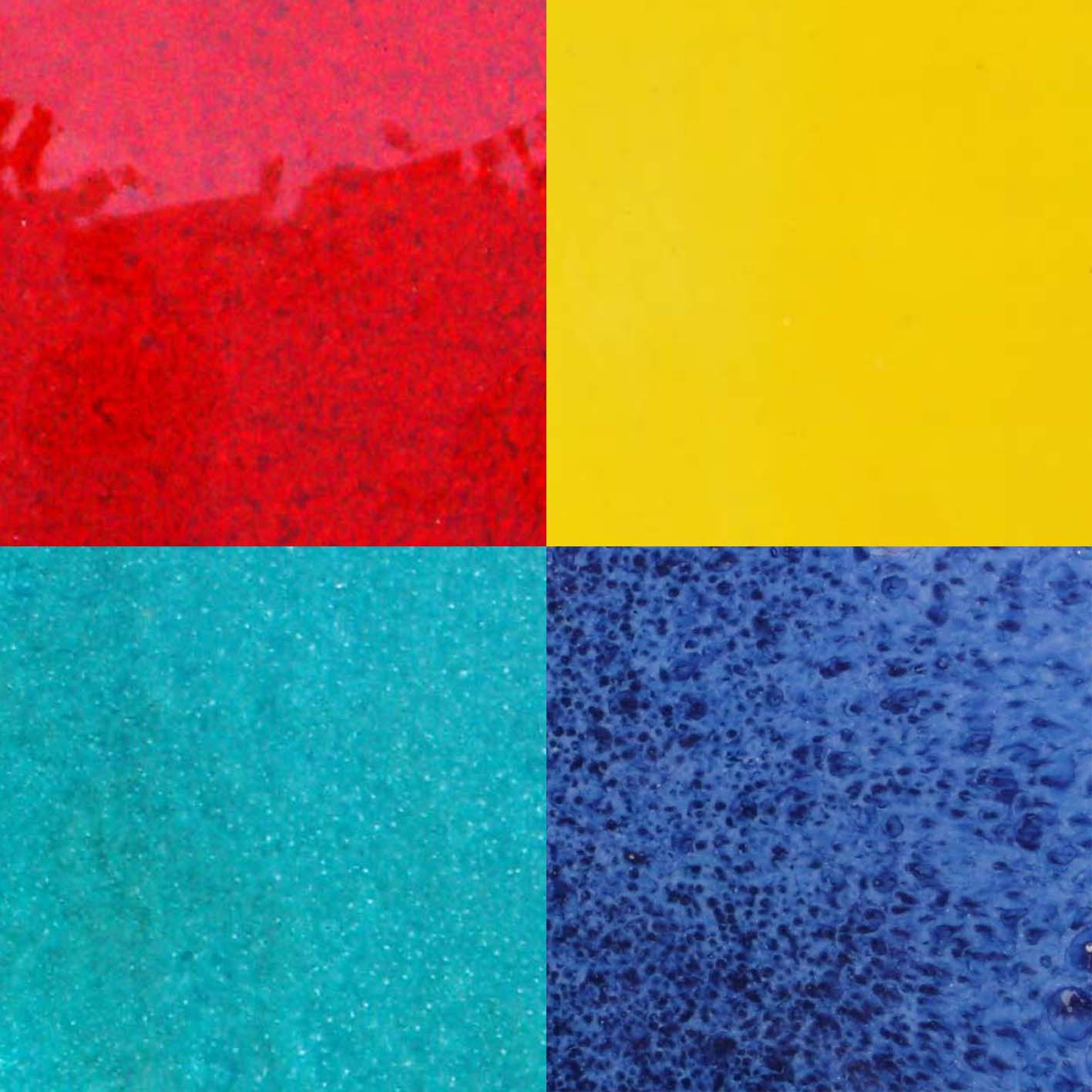 Glasuren und Engoben in allen möglichen Farben und Effekten.